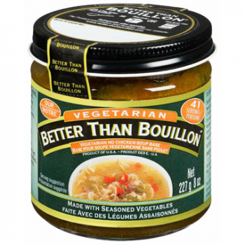 - Bouillon in cubes or jars (chicken, beef, vegetable, mushroom, vegan alternatives)